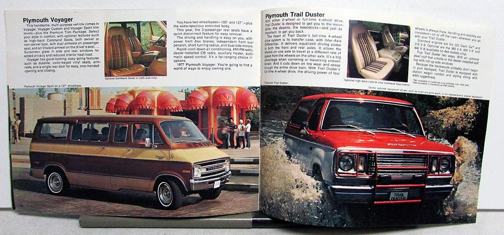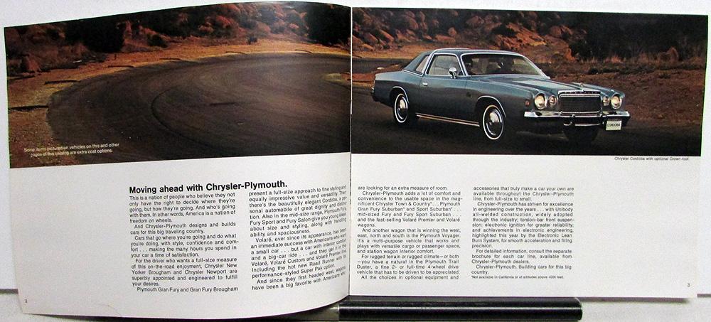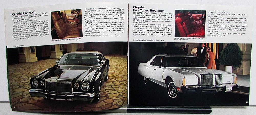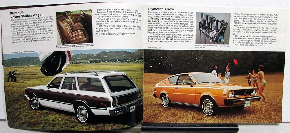 Original 1977 Chrysler-Plymouth Dealer Sales Brochure. This well-illustrated Brochure highlights the features of the Full Line of Chrysler-Plymouth Models. It is in good condition with minor wear and blemishing.