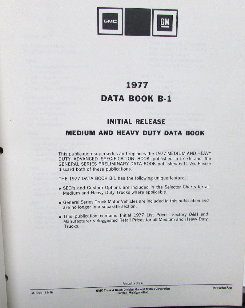 1977 Data Book B-1 Initial Release Medium and Heavy Duty Data Book.