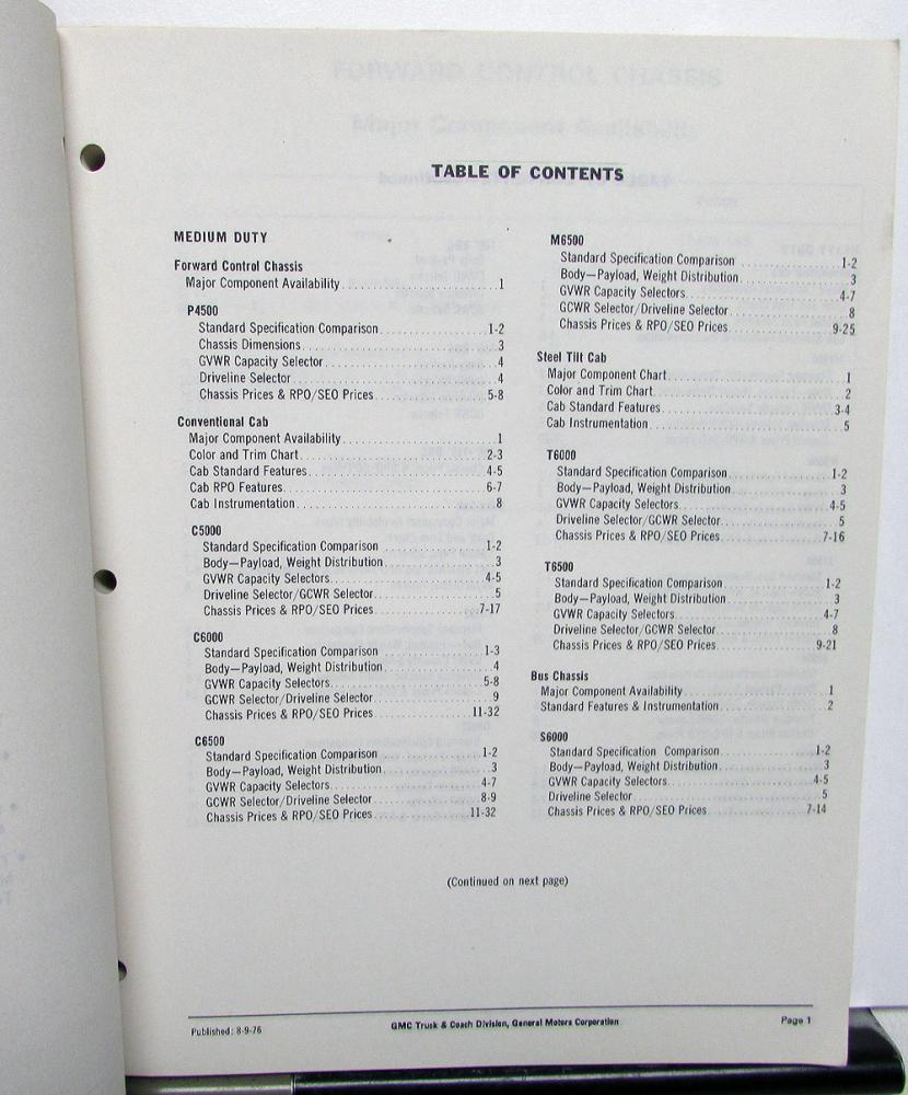 This publication supersedes and replaces the 1977 Medium and Heavy Duty Advanced Specification Book published 5-17-76 and the General Series Preliminary Data Book published 6-11-76. Please discard both of these publications.