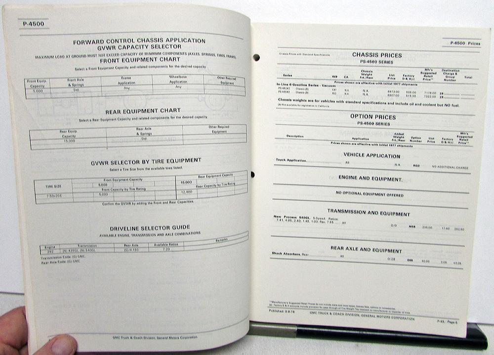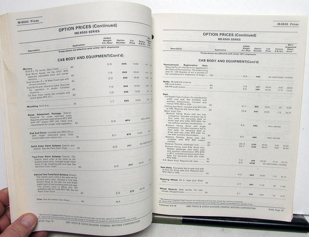 This publication contains Initial 1977 List Prices, Factory D&H and Manufacturer's Suggested Retail Prices for all Medium and Heavy Duty Trucks.