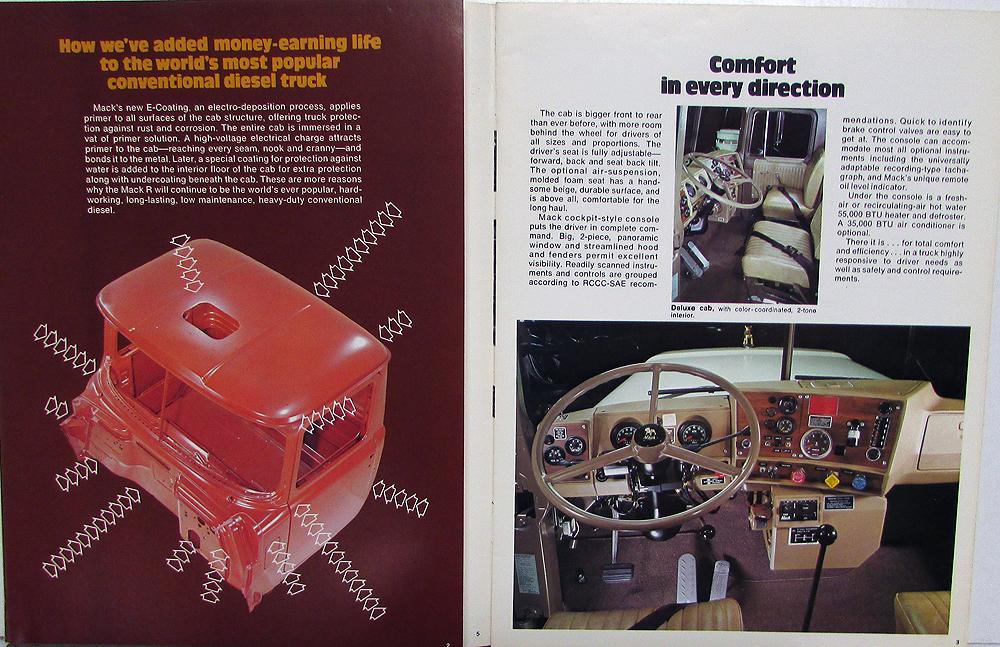 Original 1977 Mack Trucks R Series Conventional Cab sales brochure. Good condition.