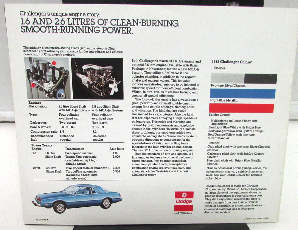 Original 1978 Dodge Challenger Dealer Color Sales Brochure. Very rare and informative piece of automotive history that will display well.