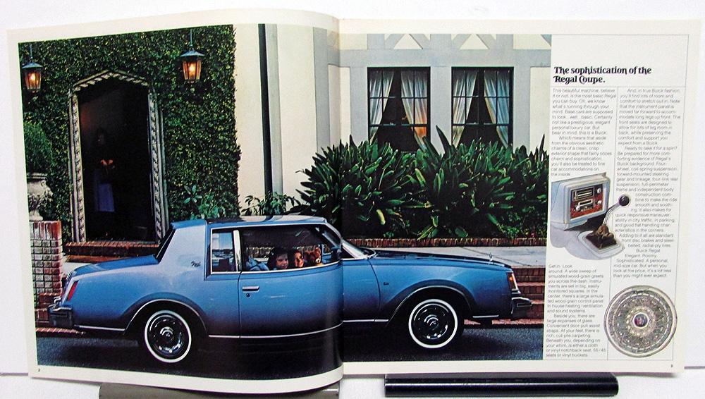 1979 Buick Regal Century Sales Brochure. Features Regal Coupe, Regal Limited, Regal Sport Coupe, Century Turbo Coupe, Century Limited Sedan, Century Custom, Century Special and Century Wagon. A couple of pages are devoted to highlighting the virtues of turbocharging. Back highlights safety features. Good condition with minor wear and blemishing [see photos]. Last two pages are crease at lower corner. Note: Canadian