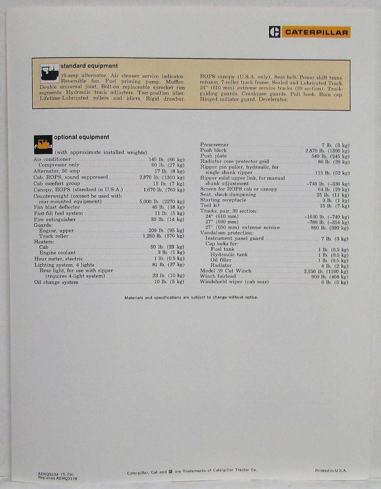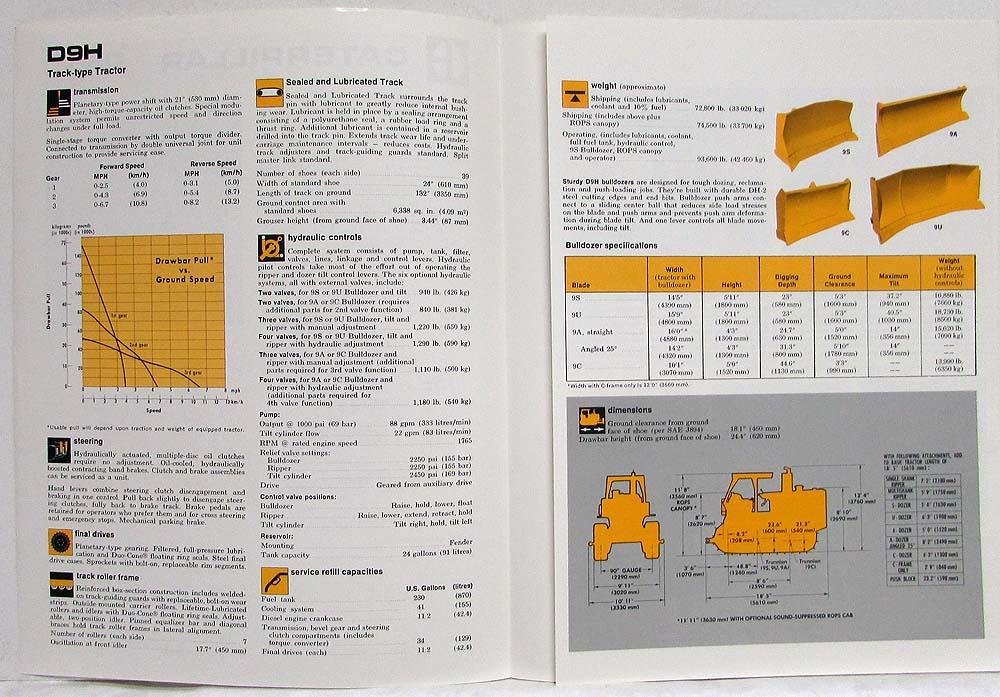 1979 Caterpillar D9H Track-Type Tractor Sales Spec Folder. Original.