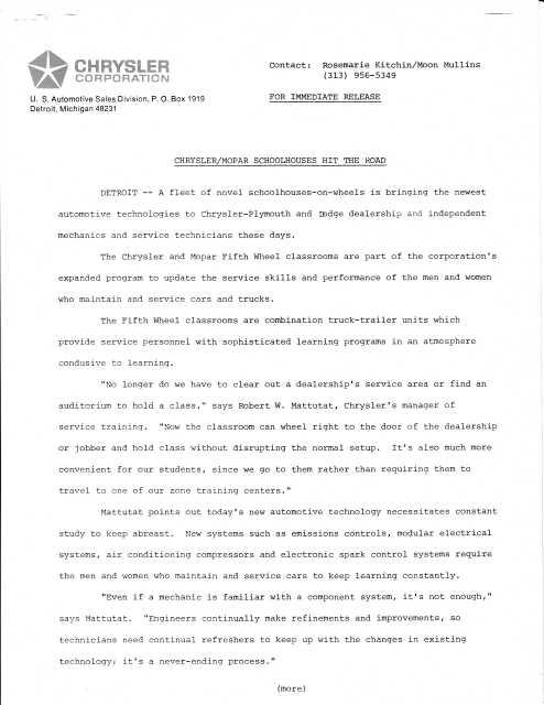 1979 Chrysler Mopar One Room Schoolhouse on Wheels Press Photos & Release.