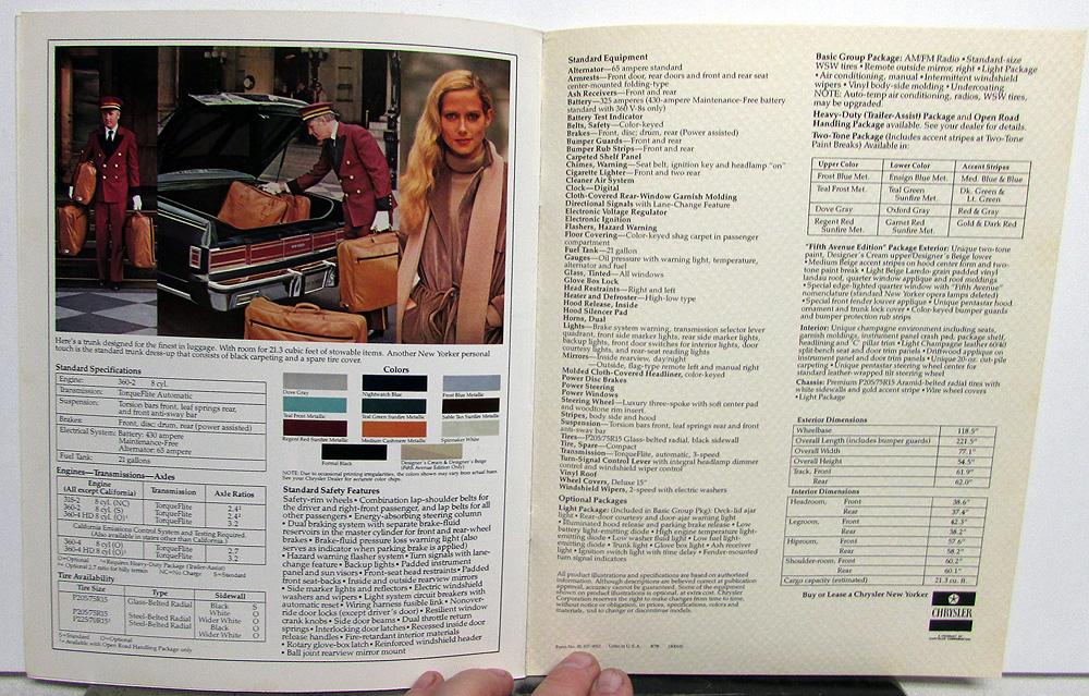 Original 1979 Chrysler New Yorker Dealer Sales Brochure. This well-illustrated Brochure highlights the features, options and specifications of the New Yorker Models. It is in good condition with minor wear and soiling.