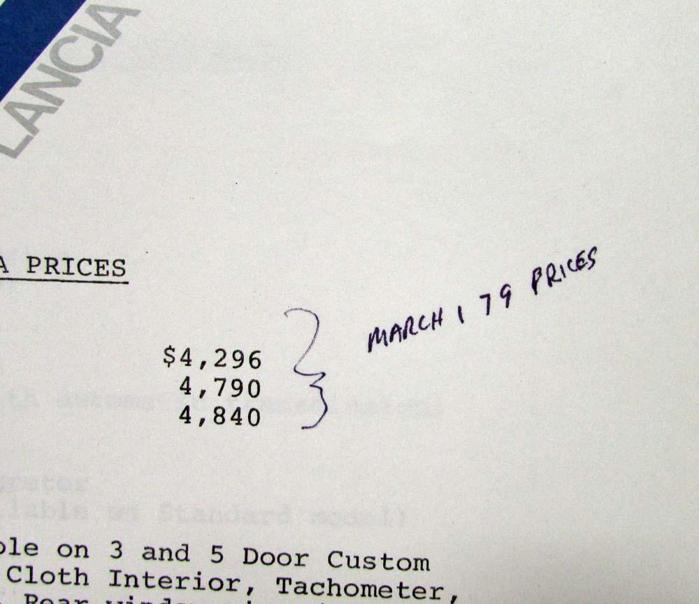 1979 Fiat Strada Price List - Fiat Motors of North America, Inc. Also notes standard equipment.