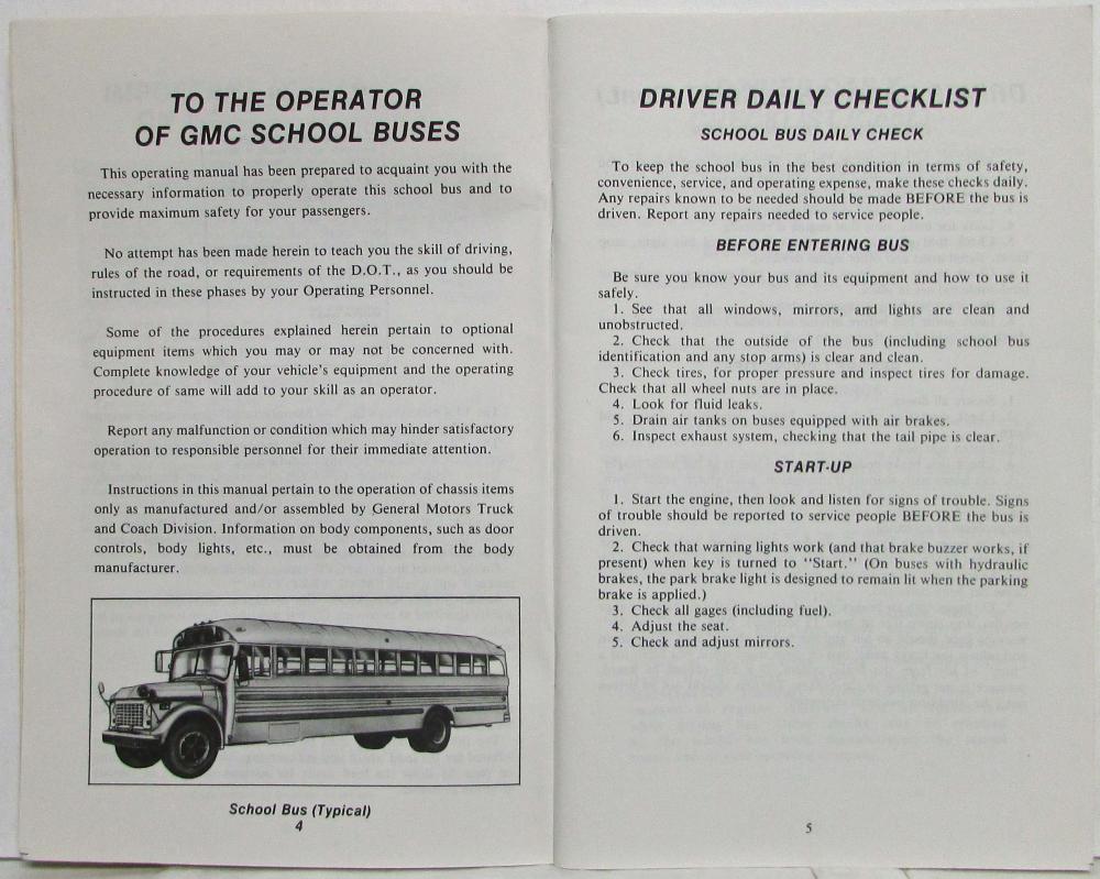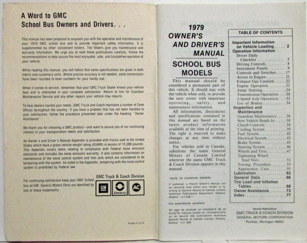 This manual was prepared to acquaint you with the operation and maintenance of your 1979 GMC School Bus and to provide important safety information.