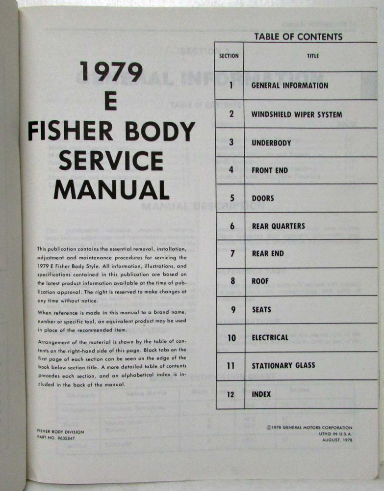 1979 Olds Toronado Buick Riviera Cadillac Eldorado Fisher Body Service Manual 79-E.