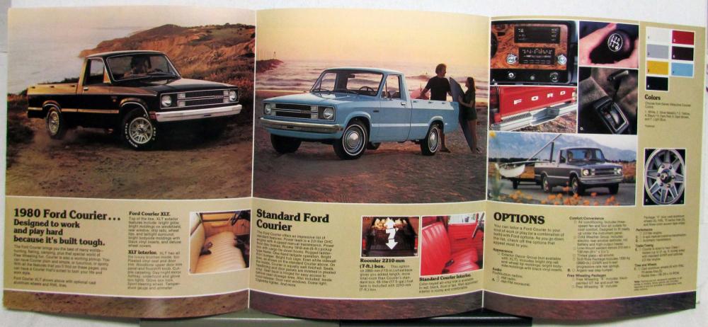 This is an original 1980 sales tri-folder for the Ford Courier trucks. This brochure is in good condition, however, might have some signs of wear or age, see photos for reference. This is a great item and would make a great addition to any motoring enthusiast's collection!