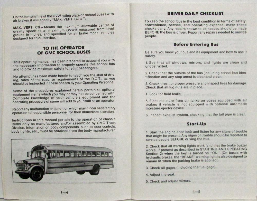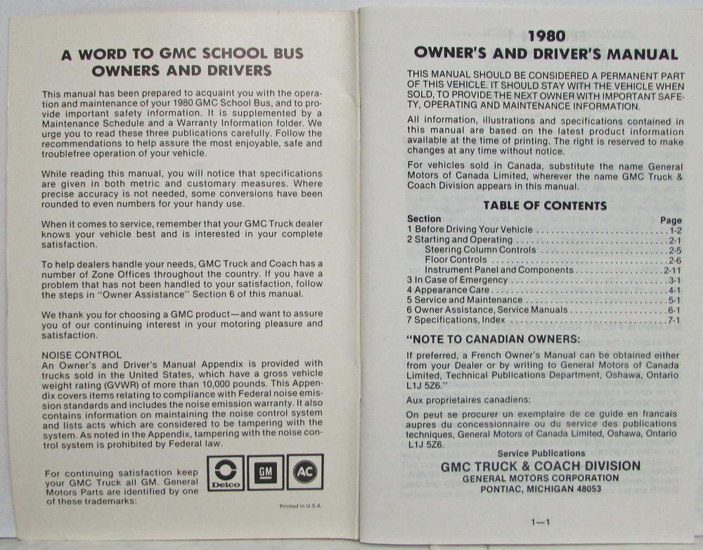 This manual was prepared to acquaint you with the operation and maintenance of your 1980 GMC School Bus and to provide important safety information.