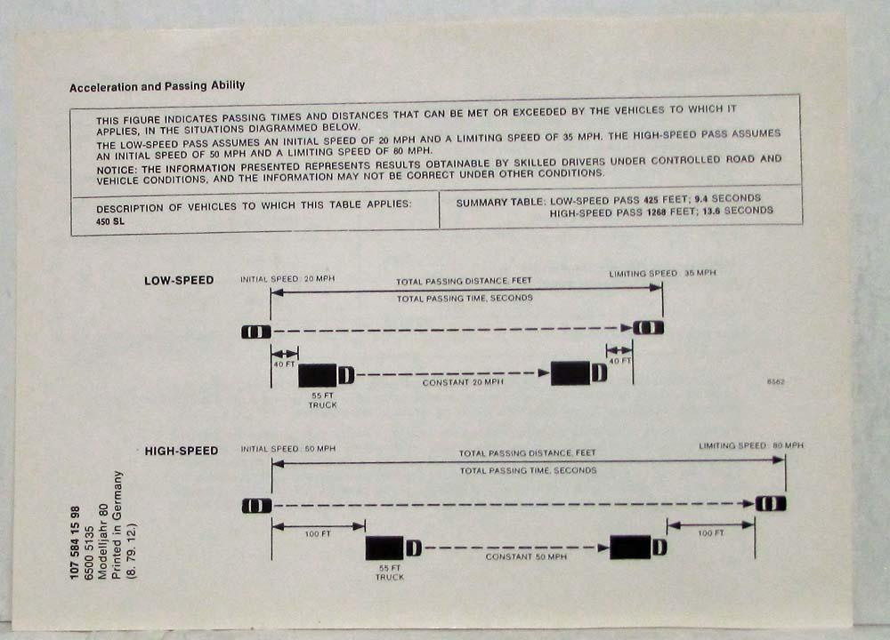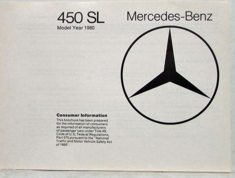 1980 Mercedes-Benz 450SL Consumer Information Brochure. Original.