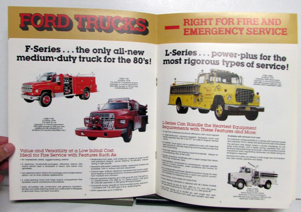 This is an original 1981 Ford sales brochure featuring the Fire and Emergency Series. This was made to show off nice photos of the models, available information, options, and more. This is in good condition, however, might have some signs of wear or age, see photos for reference. This is a great piece and would make a great addition to any collection!