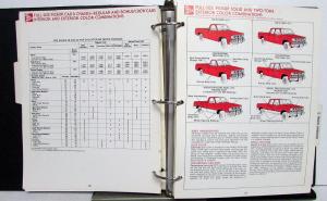 Original 1982 GMC Truck Dealer Color & Trim Book. This Sales Reference Album covers the Full Line of GMC Trucks including Pickups,Vans, Medium and Heavy Duty Models. This was used by Salesmen to help Customers make their purchase. It shows the interior and exterior color options along with having actual Fabric Samples and Color Paint Chips. It is in the original binder and is in good condition with minor wear, blemishing and soiling [see photos]. Very rare and informative Dealer Only item that will display well.