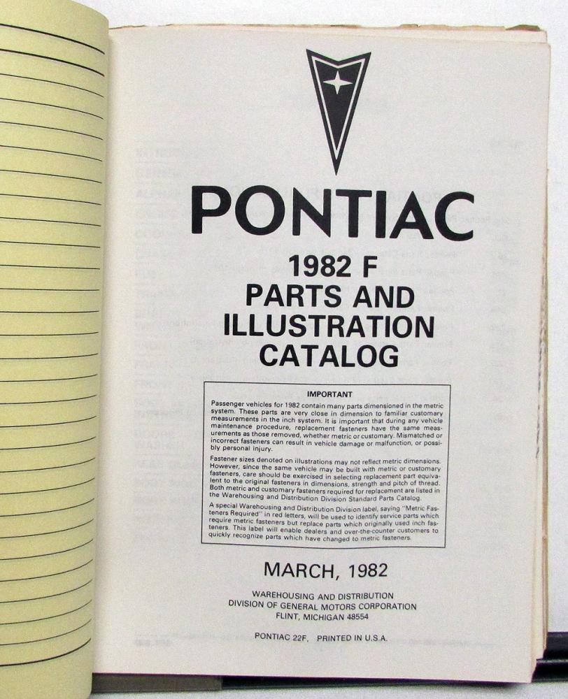 1982 Pontiac Firebird, Firebird Trans Am and Firebird SE (F Model) Parts Book and Illustration Catalog. Original.