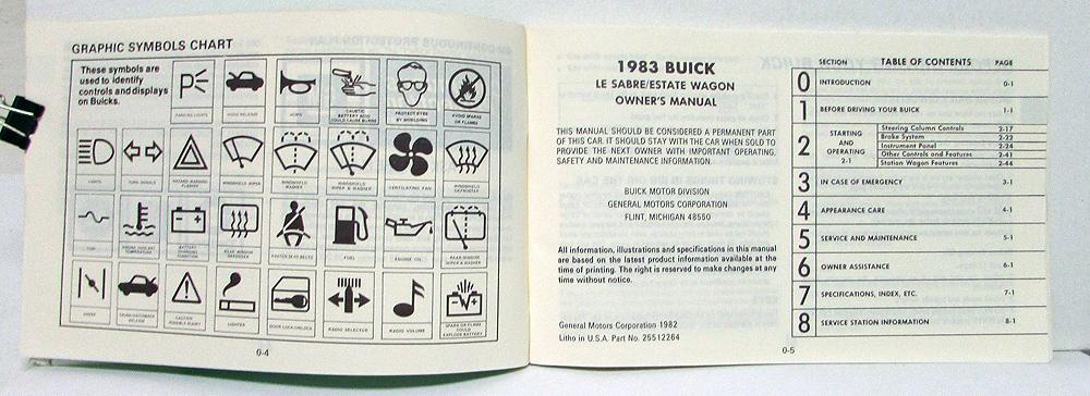 1983 Buick Electra Owners Operators Manual Original. This manual contains operation, service/maintenance and general instructions along with illustrations.