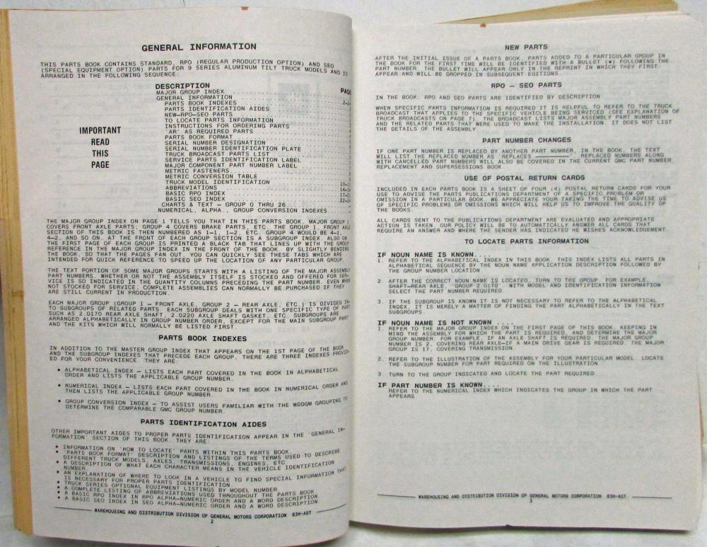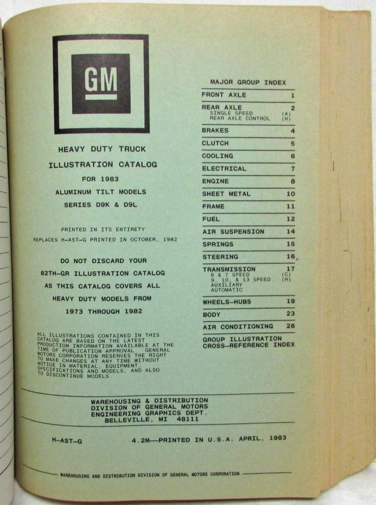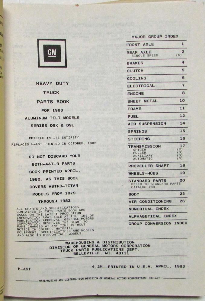 1983 GMC Astro Parts and Illustration Book. Heavy Duty Series D9K D9L. Original.