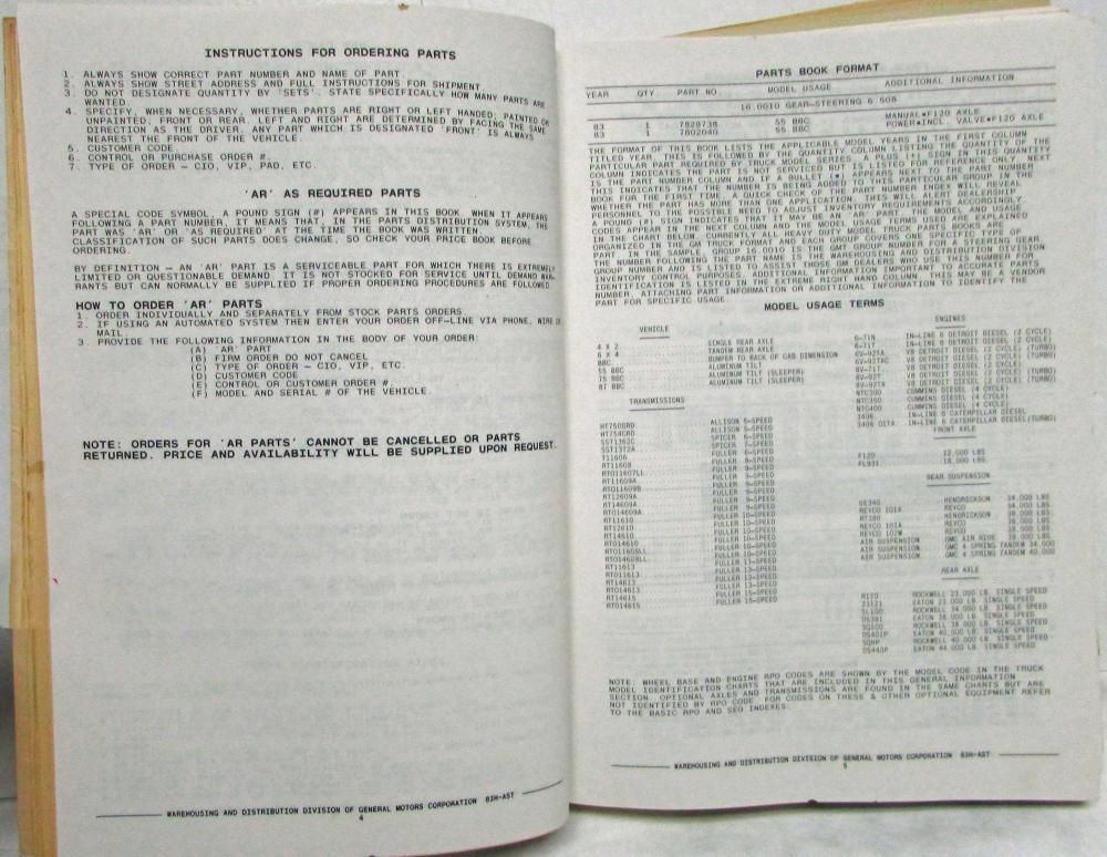 Condition: Parts Books are used in Dealership Shops, Independent Garages and in Fleet Environments and thus can reflect such use, most often showing extensive signs of soiling, age, and wear. The information within is still legible and can give valuable insight. The images shown are representative of what is shipped. An informative piece that will be a great and useful addition to the GM Truck Owner or Collector.