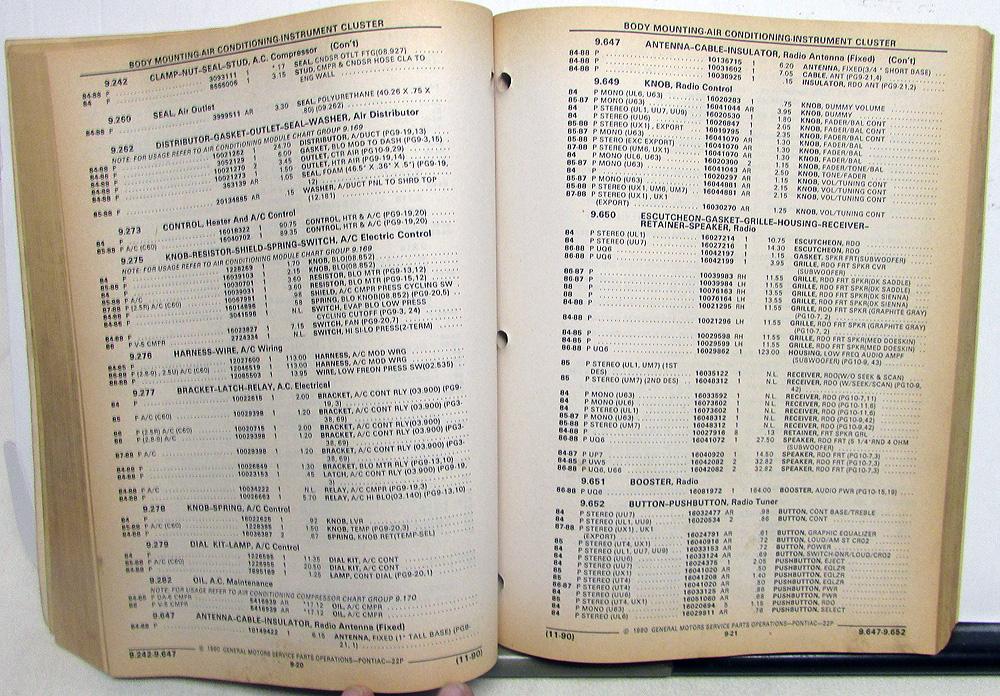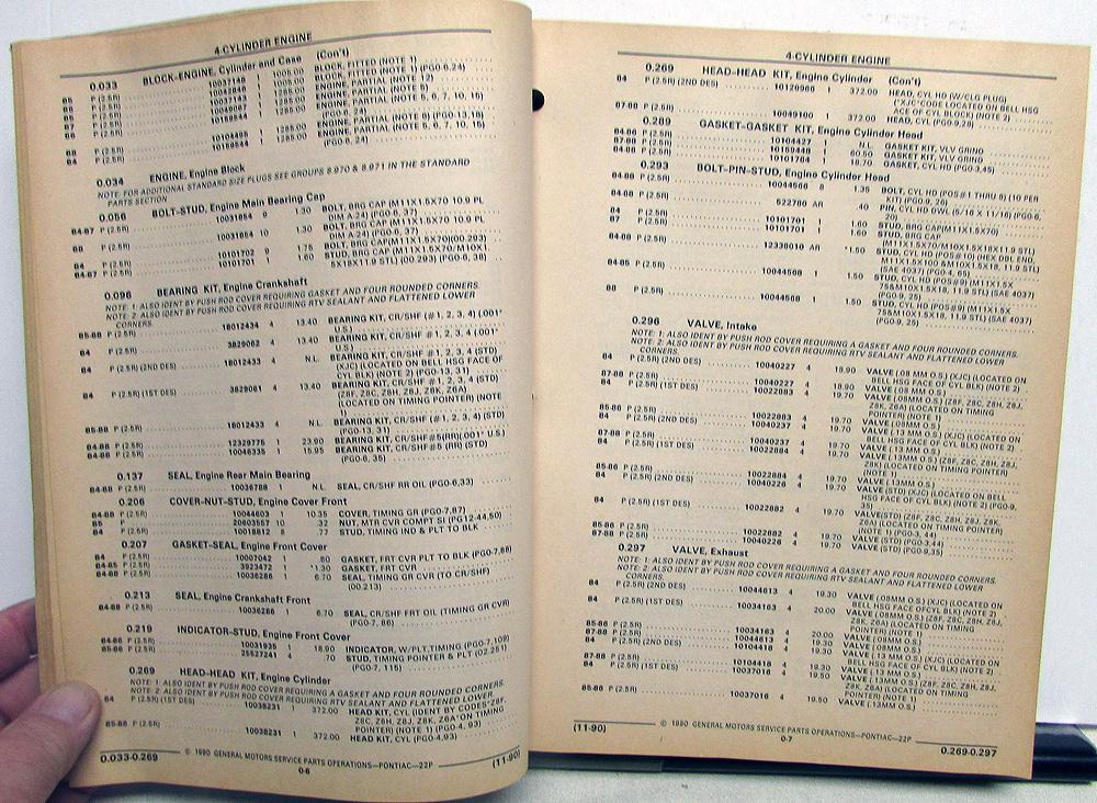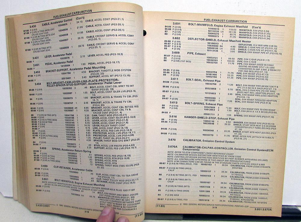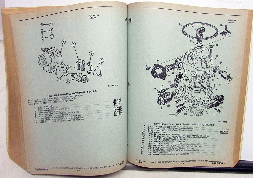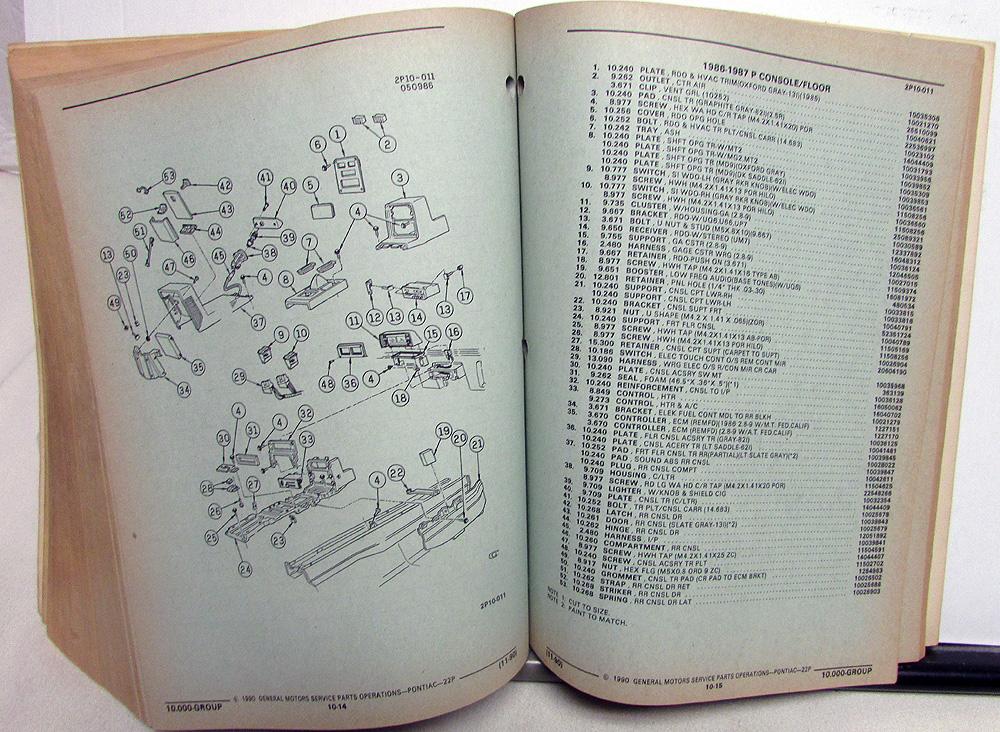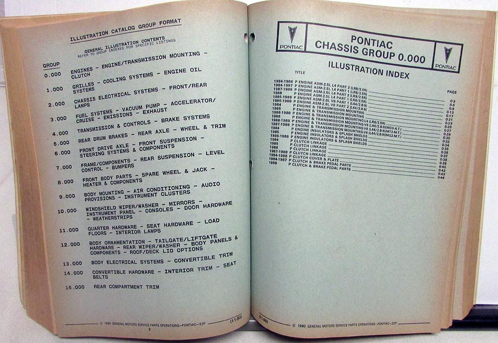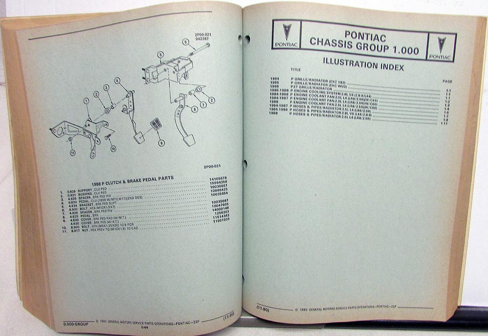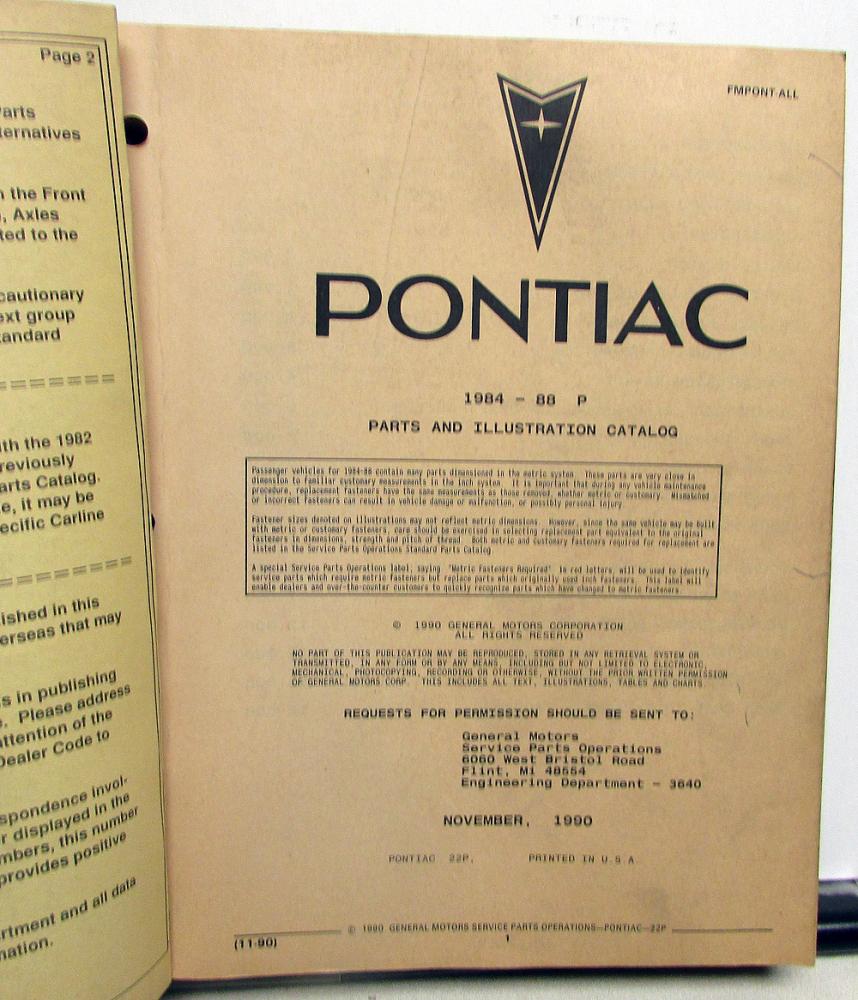 1984-1988 Pontiac Fiero/Fiero SE/Fiero GT (P) Parts and Illustration Catalog. Original.