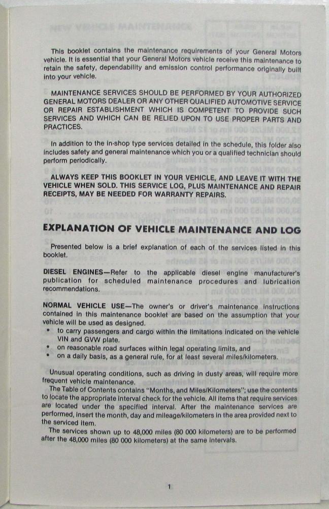 This folder contains the maintenance requirements of your General Motors vehicle. It is essential that your General Motors vehicle receive this maintenance to retain the safety, dependability and emission control performance originally built into your vehicle.