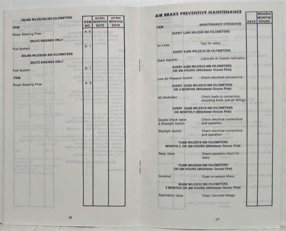 1984 GMC Medium Duty Truck Maintenance Schedule and Log. Original.