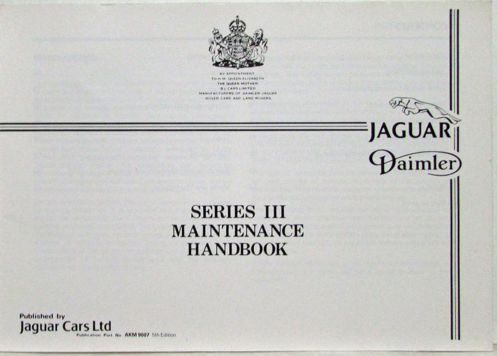 1984 Jaguar Daimler Series III Maintenance Handbook Owner's Manual. Original.