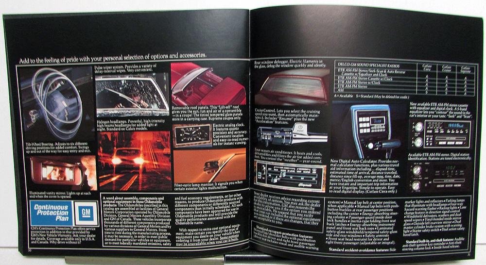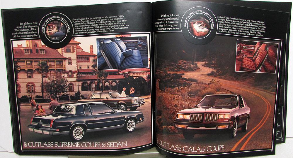 This is an original 1984 sales brochure for Oldsmobile Cutlass Ciera, Cutlass Cruiser, and Cutlass Supreme. This was made to show off nice photos of the model, available info, specifications, and more. This brochure is in very good condition with minor wear, see photos for reference. This is a great piece and would make a great addition to any collection!