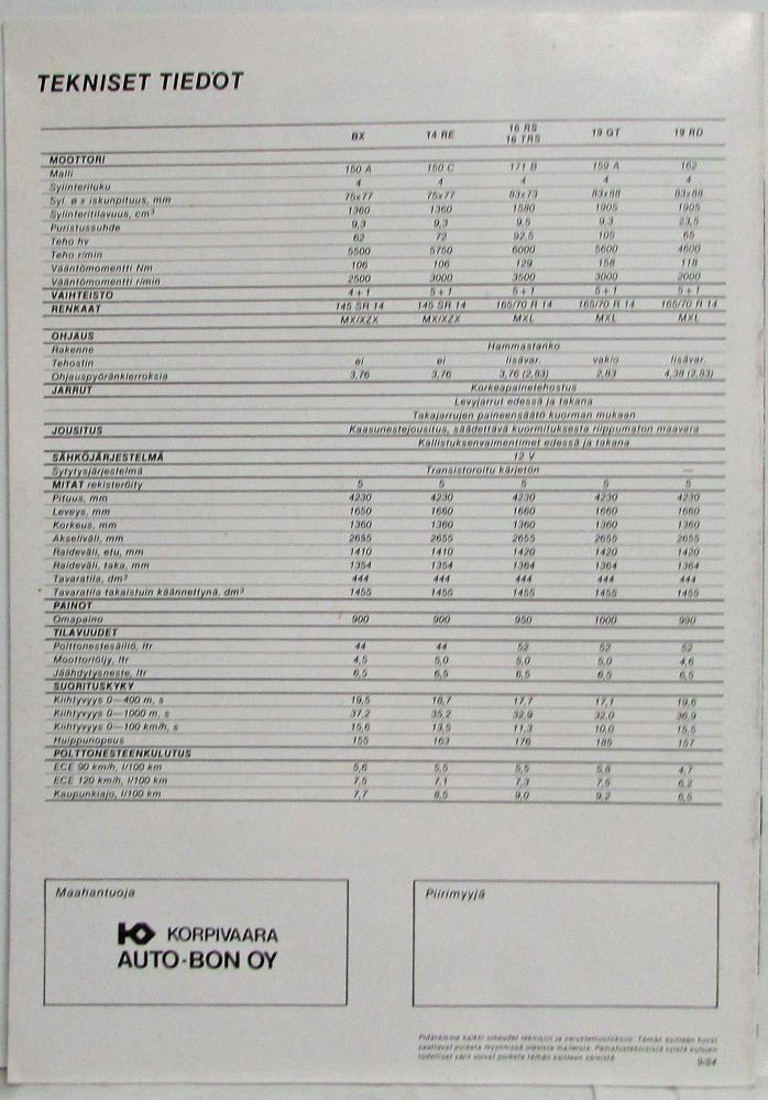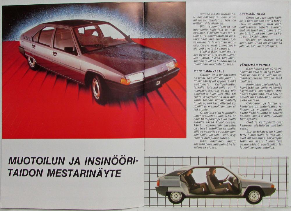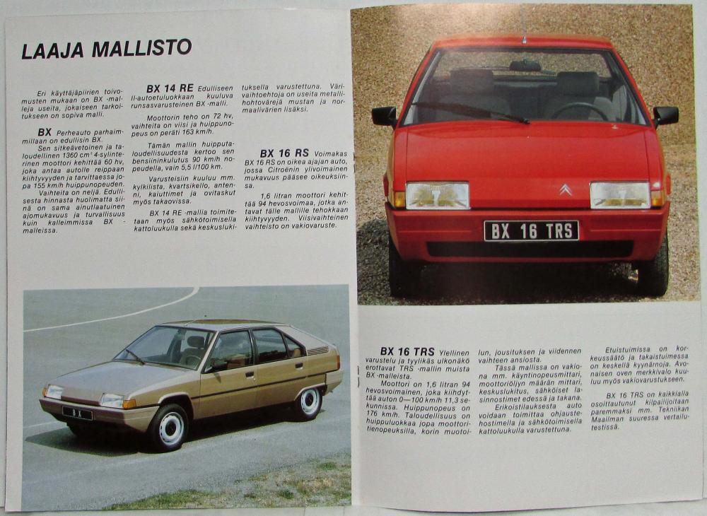 1985 Citroen BX Sales Brochure. Original. NOTE: Finnish Text.