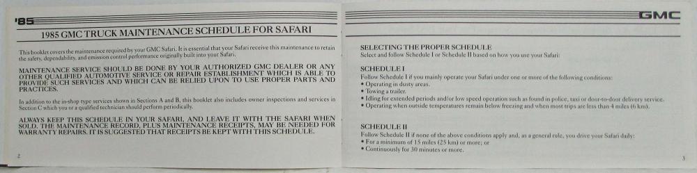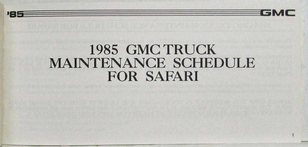 1985 GMC Truck Safari Maintenance Schedule Booklet. Original.
