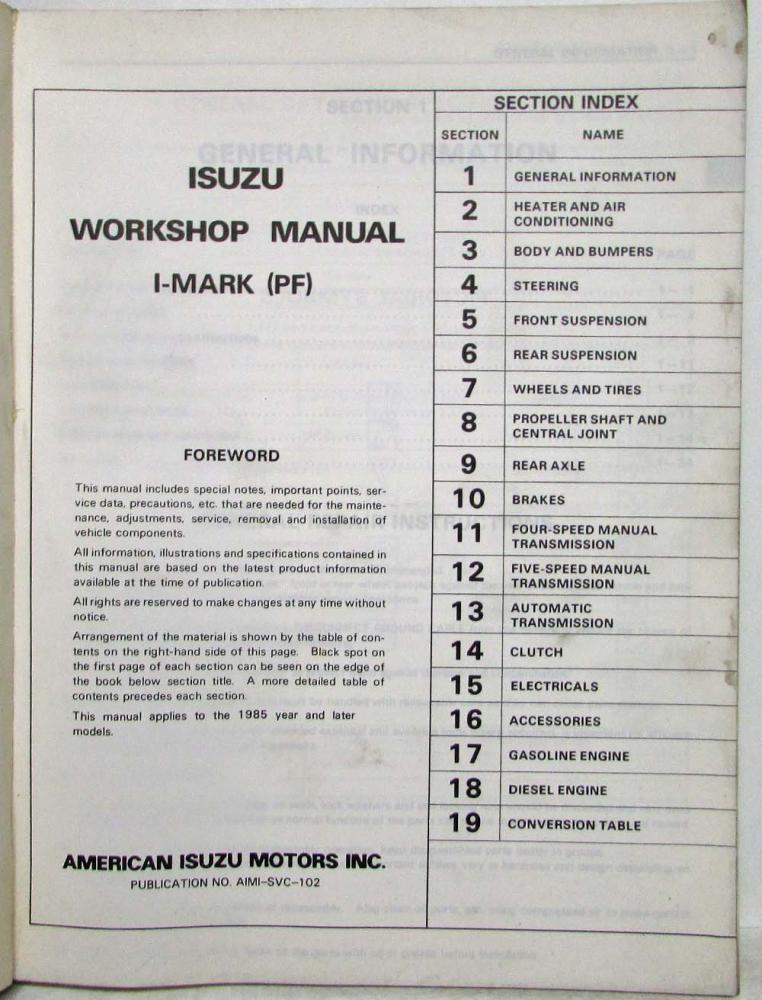 1985 Isuzu I-Mark (PF) Service Shop Repair Manual. Original.