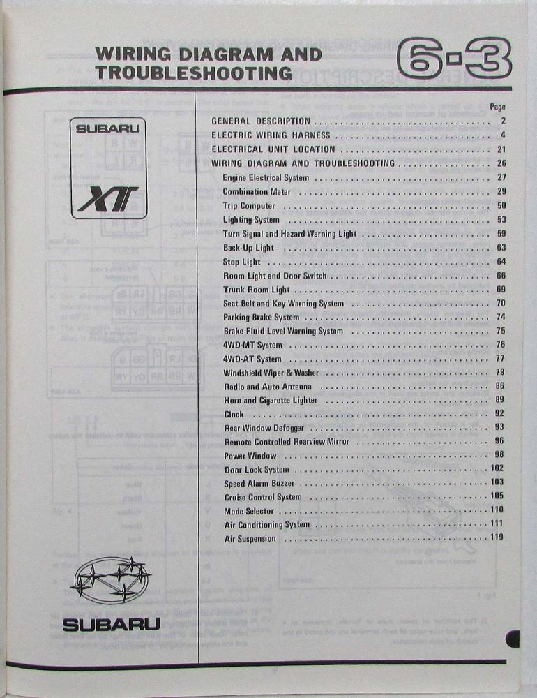 1985 Subaru XT Service Shop Repair Manual and Supplement. Original.