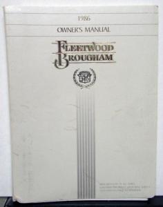 1986 Cadillac Sedan DeVille, Coupe DeVille, Fleetwood Sedan and Limo Owner Operator Manual Original. This manual contains operation, lubrication and general care instructions along with illustrations. The cover is slightly tattered.