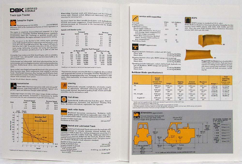 1986 Caterpillar D8K Track-Type Tractor Sales Spec Folder. Original.