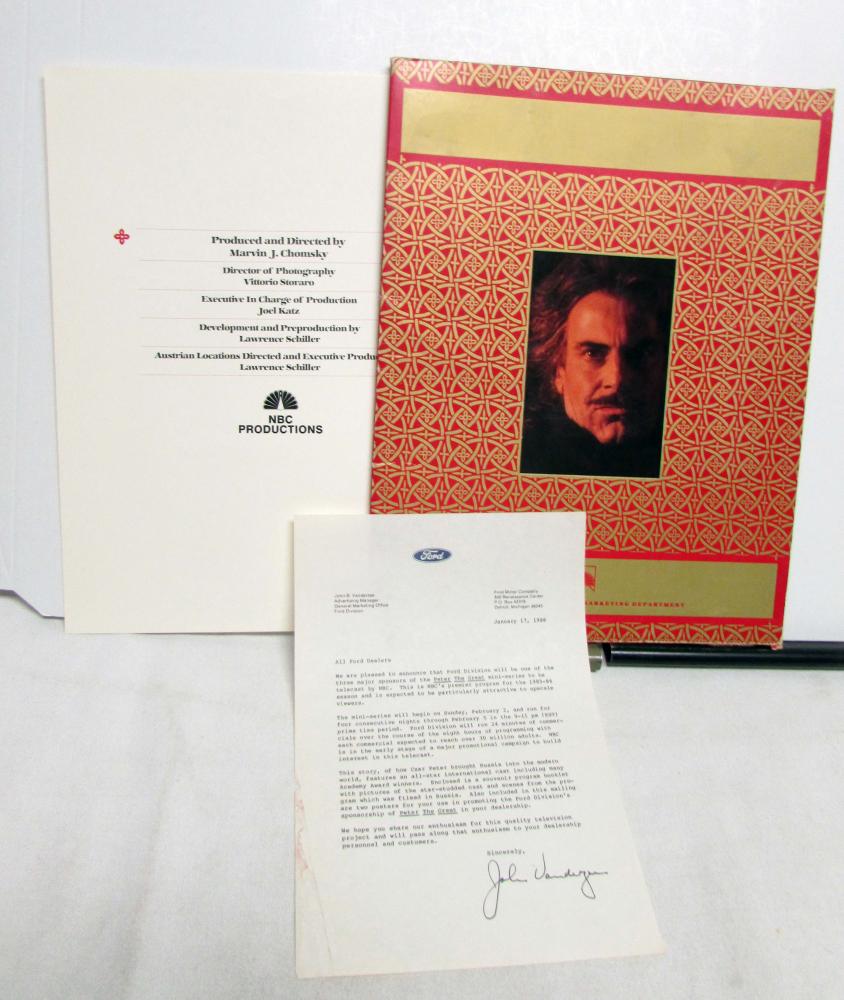 This is a 1986 original souvenir program booklet from the four-day mini-series Peter The Great that includes pictures of the star-studded cast, photos of the scenes of the program, and more. Ford was one of the three main sponsors for this program and got 24 running minutes of commercials over the course of the eight hours of programming with each commercial expected to reach over 30 million adults. This is a great piece of history that would make a great addition to any collection!