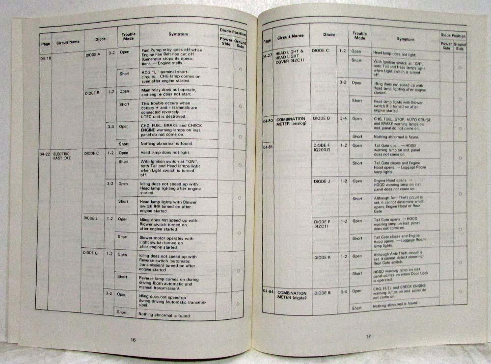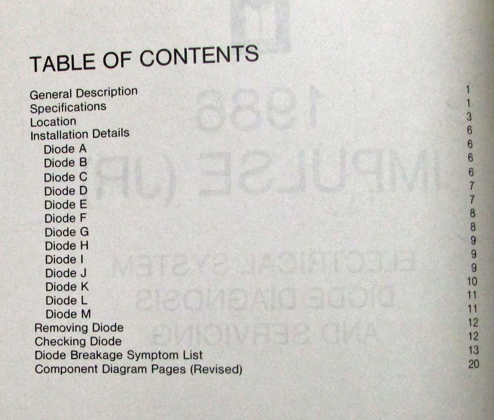 1986 Isuzu Impulse (JR) Electrical System Diode Diagnosis and Servicing Manual. Original.