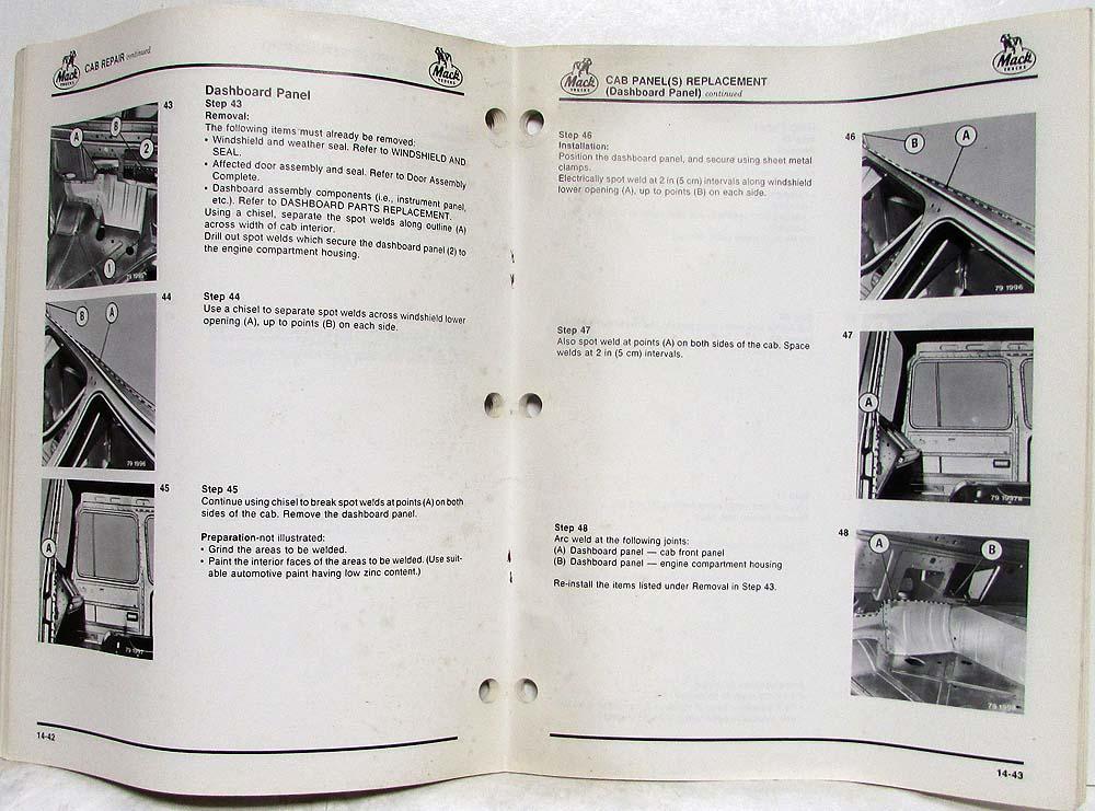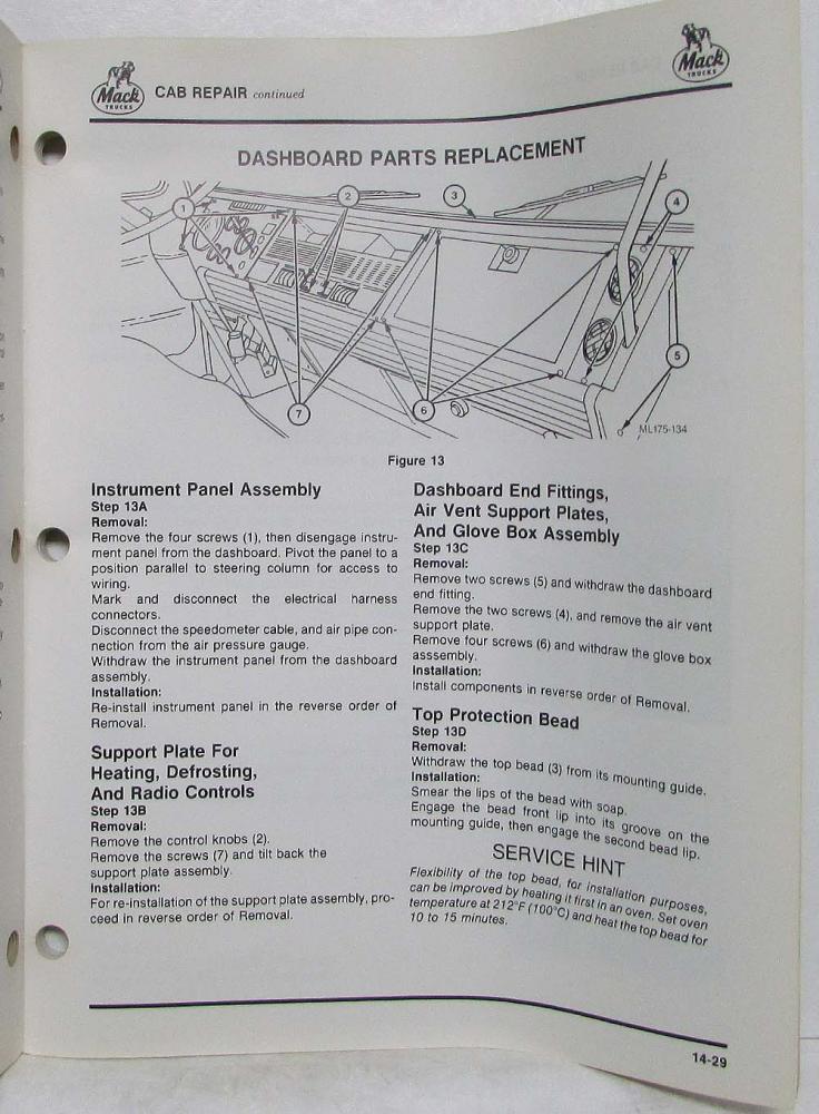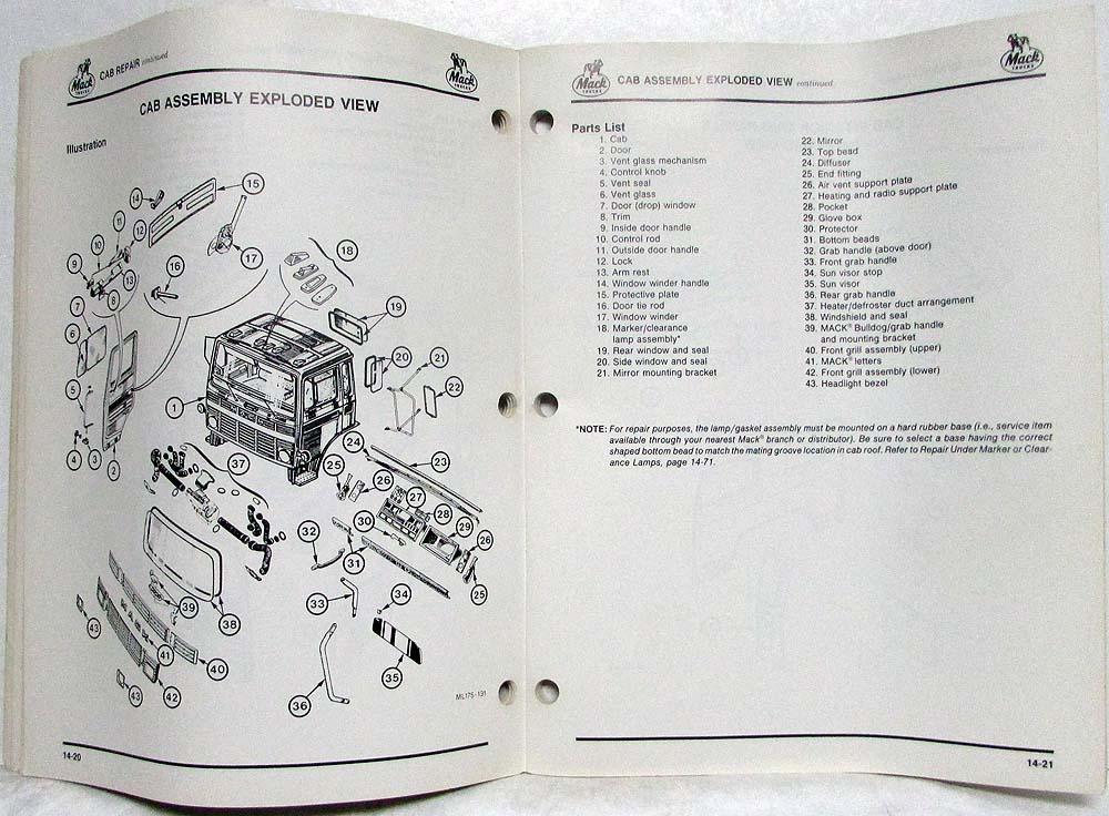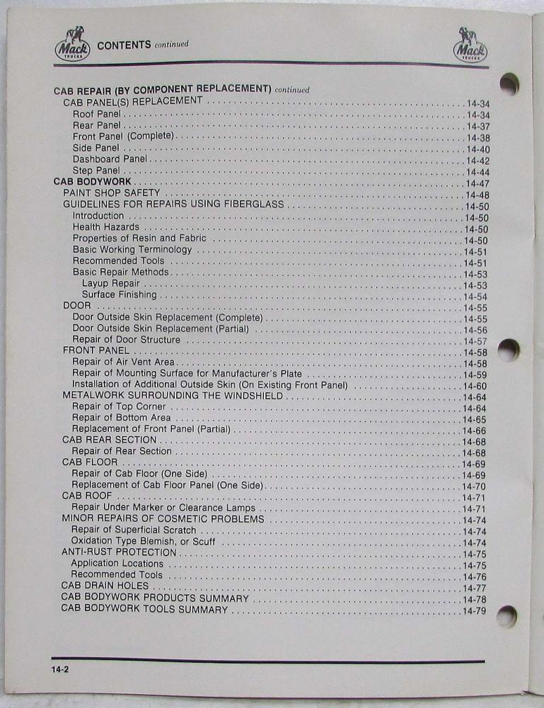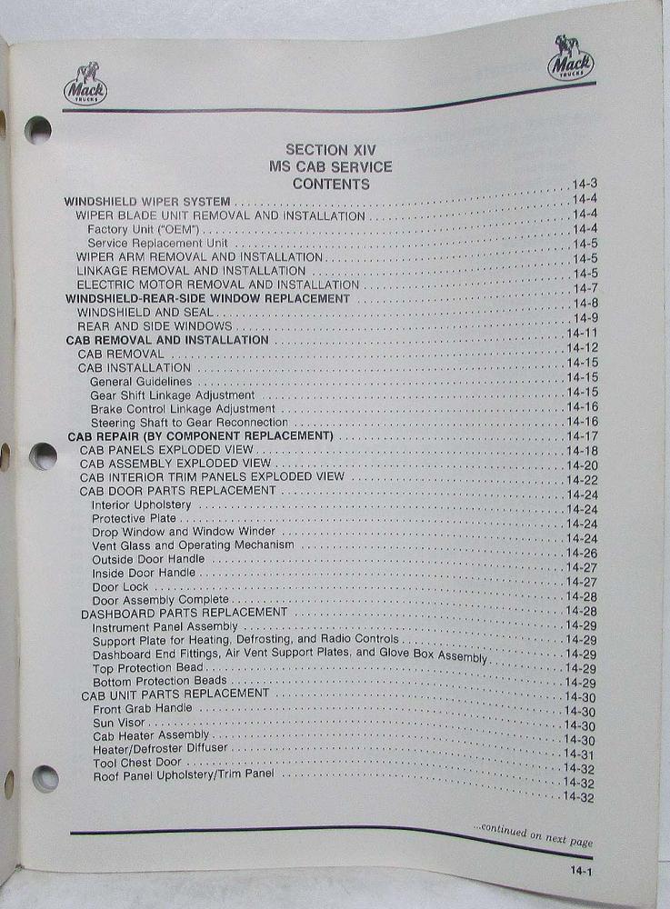 1986 Mack MS Model Cab-Over Mid-Liner Service Shop Repair Manual Section XIV. Original.
