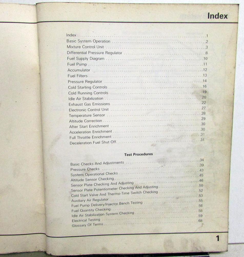1986 Volkswagen VW CIS (Continuous Injection System) - Electronic Fuel Injection Service Training Publication. Original.