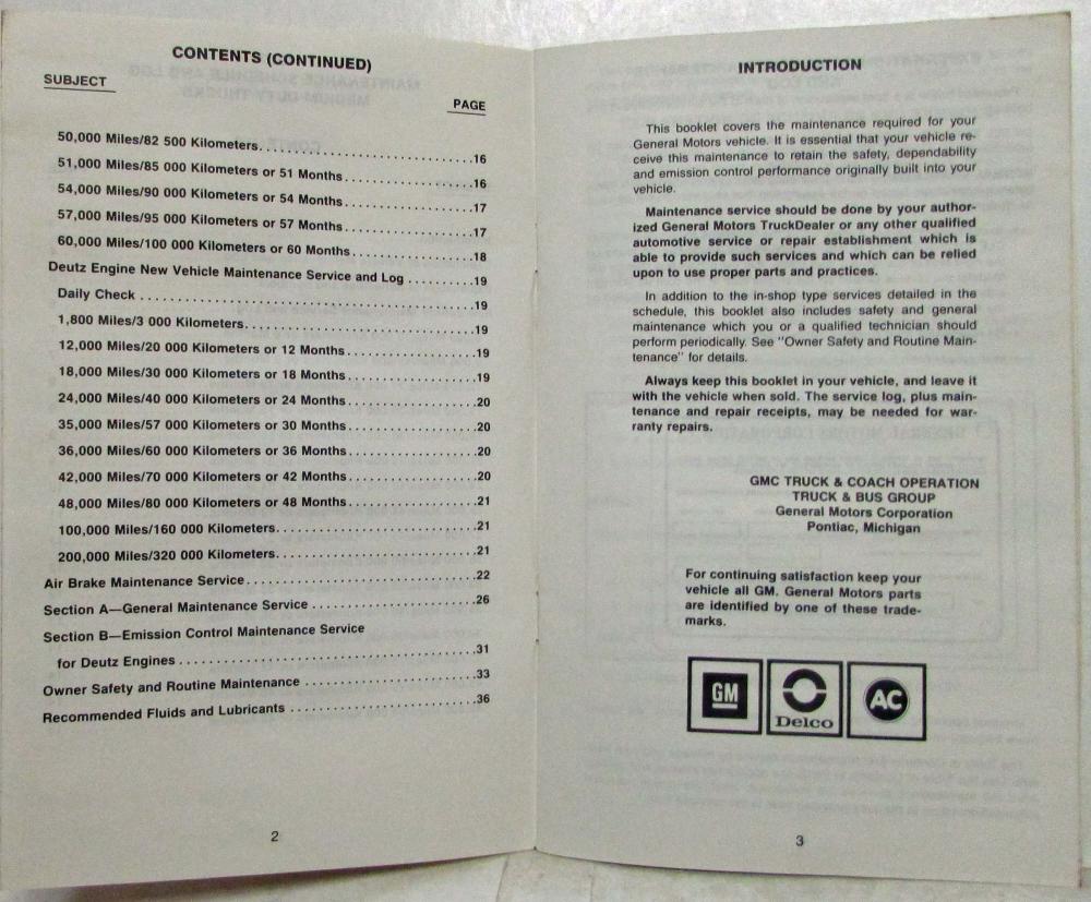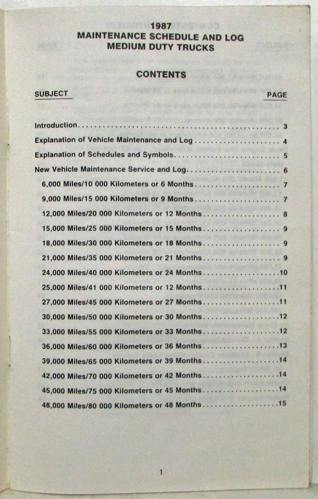 1987 GMC Medium Duty Truck Maintenance Schedule Booklet. Original.