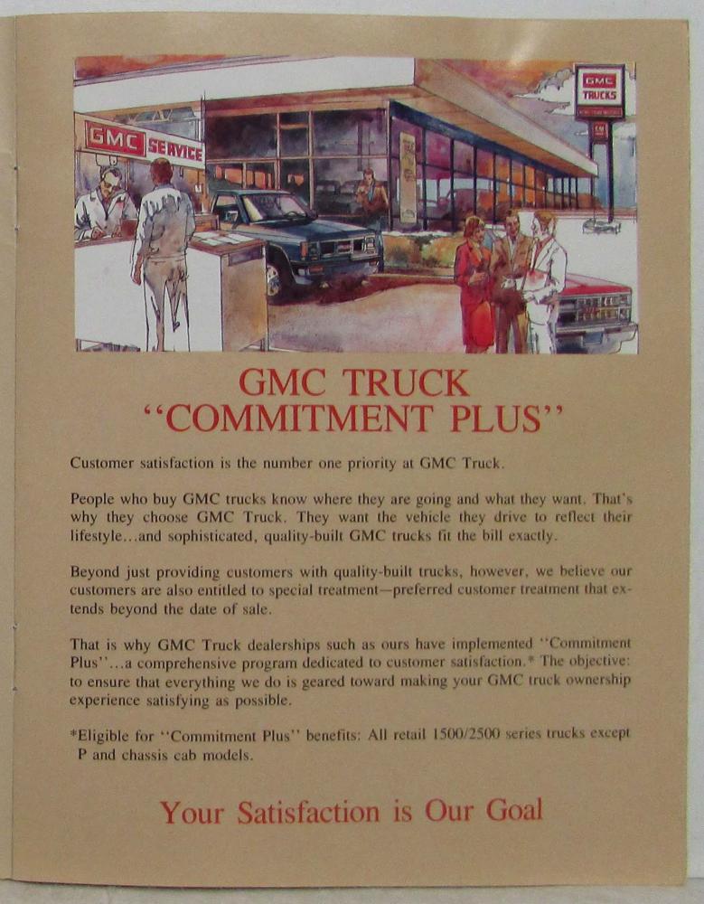 1987 GMC Trucks Commitment Plus Consumer Information Booklet. Original.
