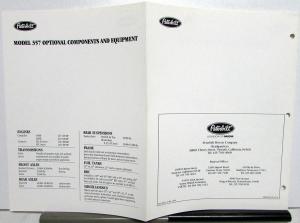 1987 Peterbilt 357 Standard Specifications brochure. Includes optional components & equipment. Good condition with minor wear.