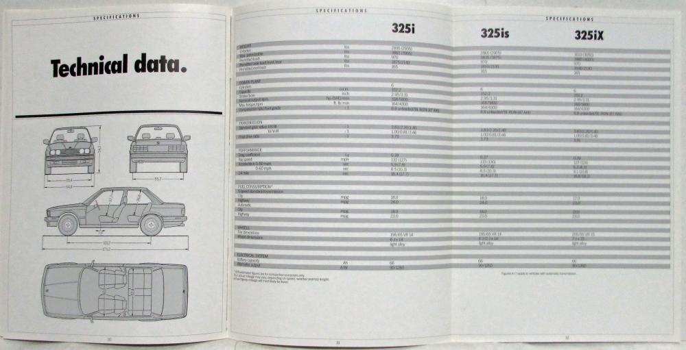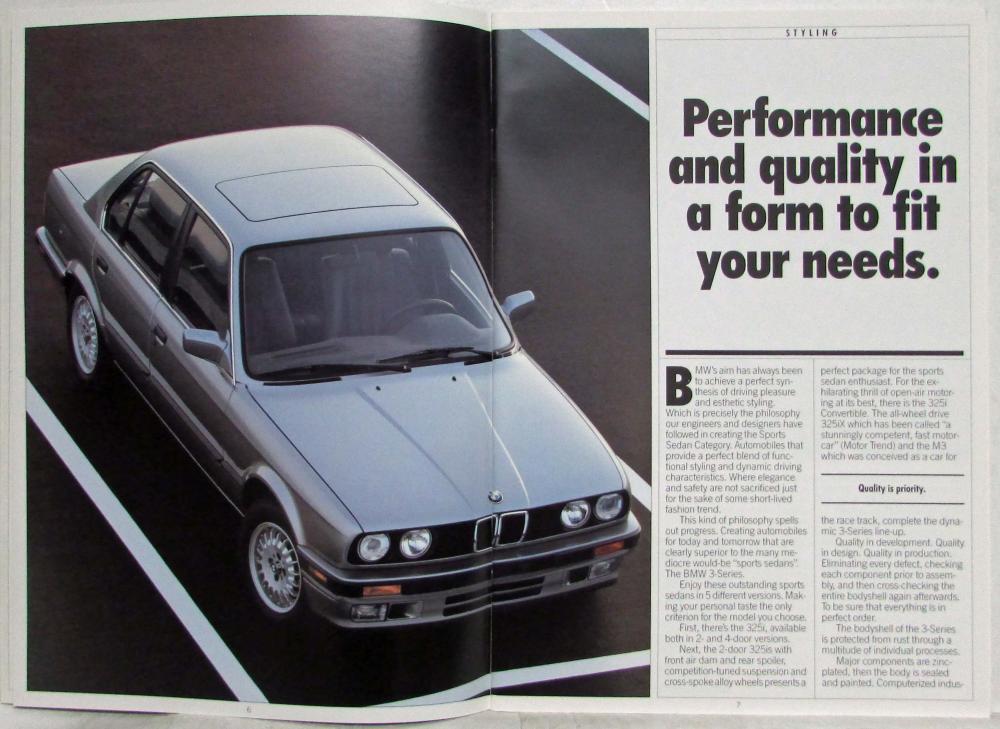 1988 BMW 325i 325is 325iX Sales Brochure. Original.
