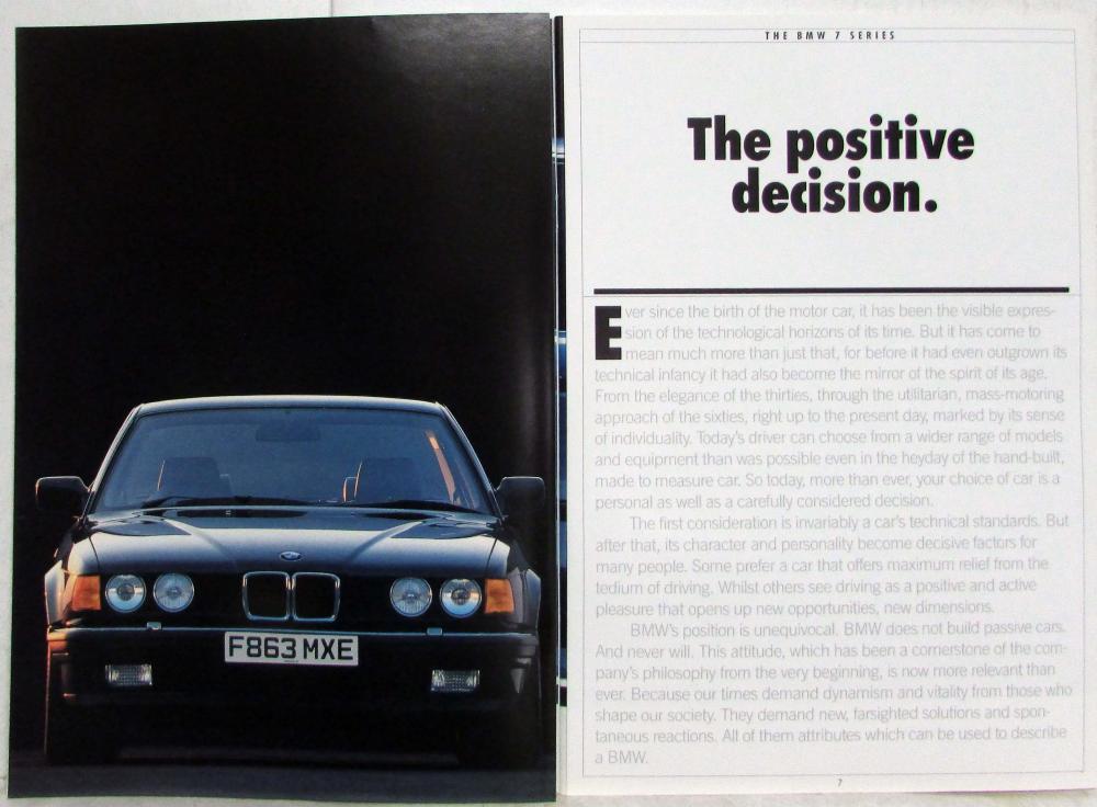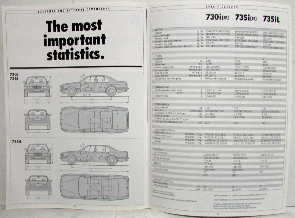 1988 BMW 730i 735i 735iL Sales Brochure. Original. RHD