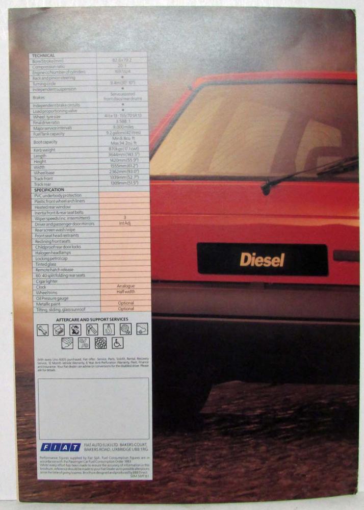 1988 Fiat Uno 60DS Diesel Sales Brochure.