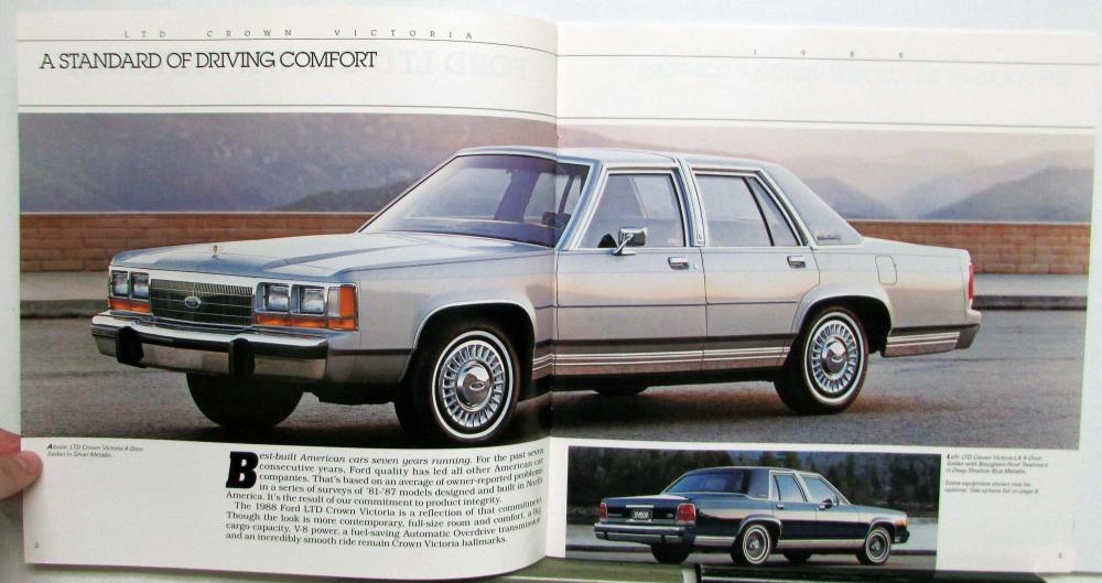 This is an original 1988 sales brochure for Ford LTD Crown Victoria. This was made to show off nice photos of the model, available info, specifications, and more. This brochure is in good condition, however, might have some signs of wear or age, see photos for reference. This is a great piece and would make a great addition to any collection!