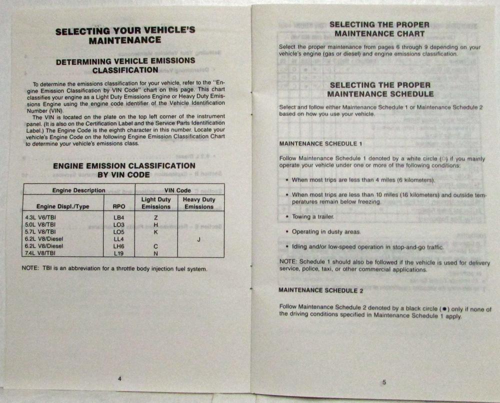 1988 GMC Truck Sierra Maintenance Schedule Booklet. Original.