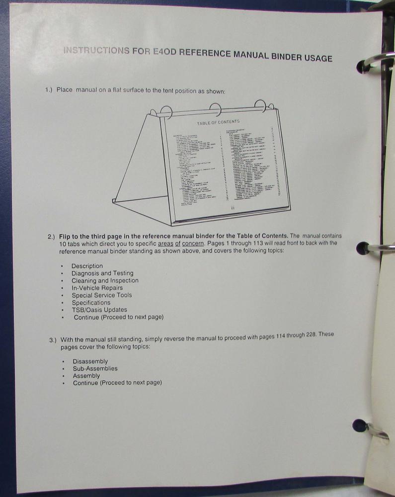 1989-1991 Ford E4OD Transmission Reference Manual TSTS 1705-204. Original. Tent style manual makes for handy use.