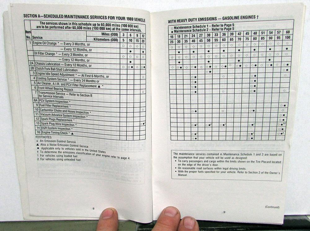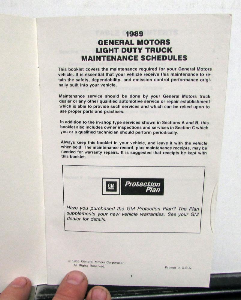 1989 Chevrolet Light Duty Truck General Motors Maintenance Schedule Booklet. Original.