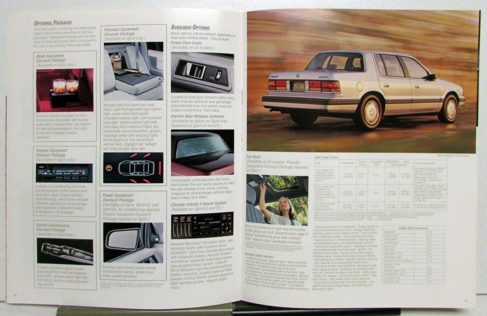 This is an original 1989 Dodge sales brochure featuring the Spirit. This was made to easily view photos and information pertaining to the model. This brochure is in good condition, however, might have some signs of wear or age, see photos for reference. This is a great piece and a must-have for any collection!