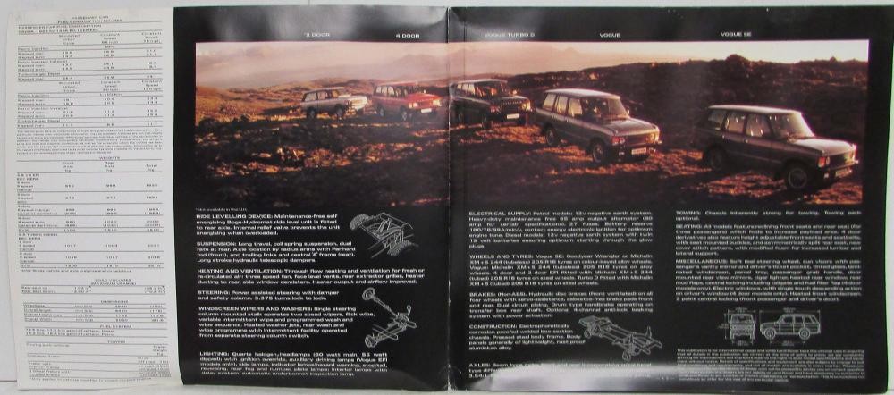 1989 Land Rover Range Rover Oversized Sales Brochure. Original.