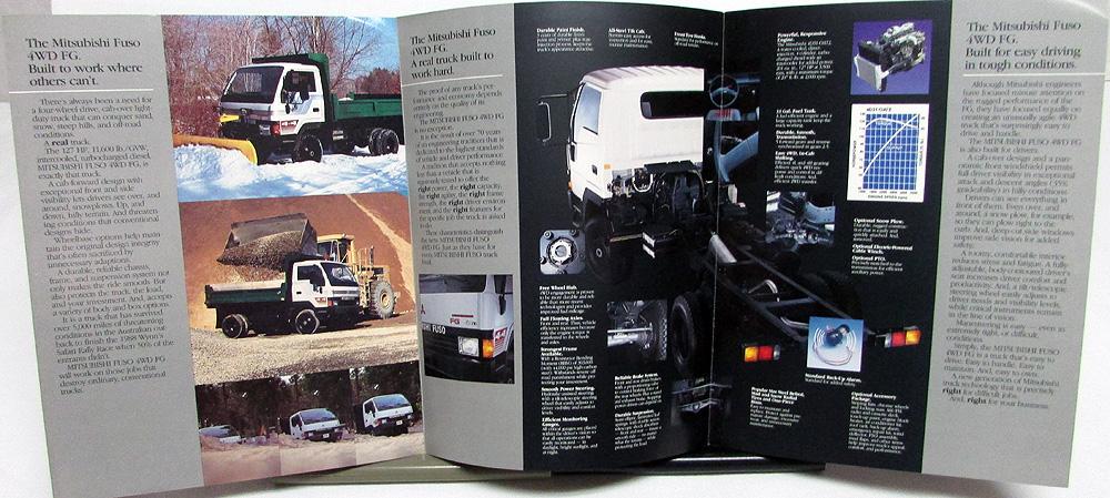 1989 Mitsubishi Fuso Trucks Dealer Sales Brochure. This Folder highlights the Features and Specifications of the FG 4WD Truck Models. It is in very good condition with minor wear [see photos].